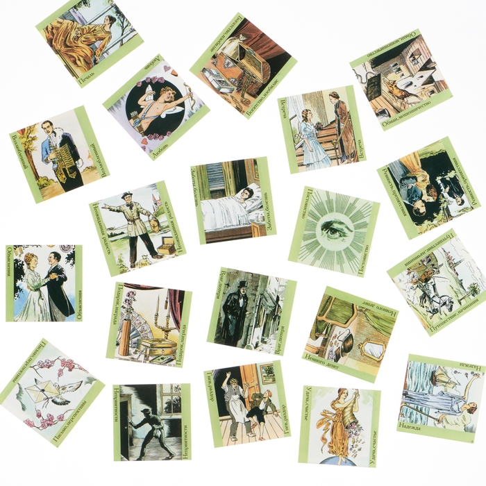 Пасьянс раскладывается по пять карт в четыре ряда. Каждую карту можно вращать до совпадения рисунка. Значение рисунков приведено в описании.