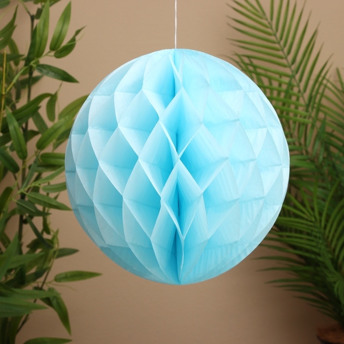 Шар бумажный декоративный, диаметр 30 см, цв. голубой