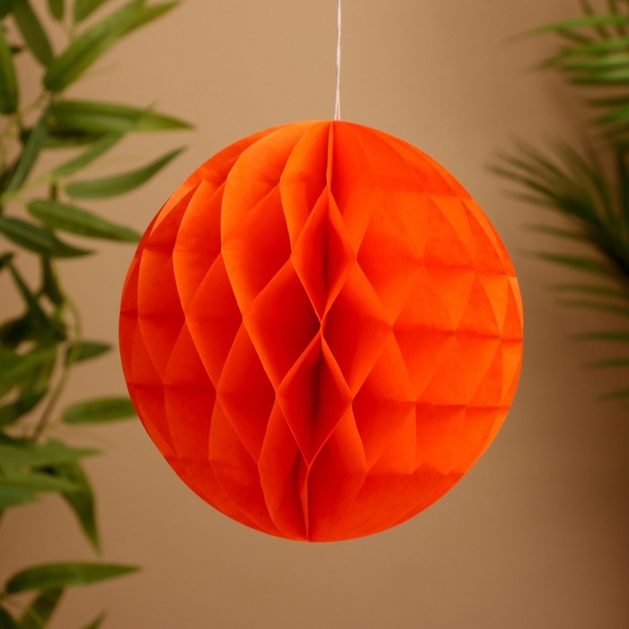 Шар бумажный декоративный, диаметр 20 см, цв. оранжевый