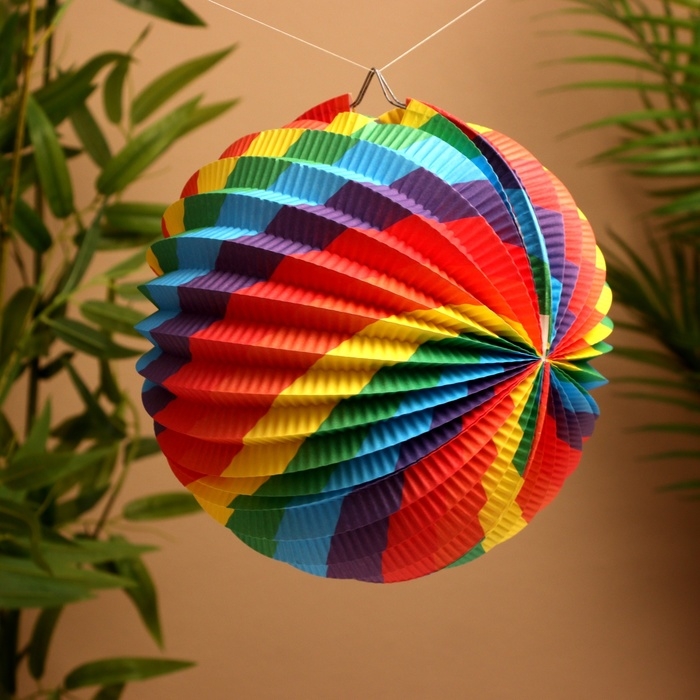 Шар бумажный декоративный "Радуга" диаметр 20 см, цв. разноцветный
