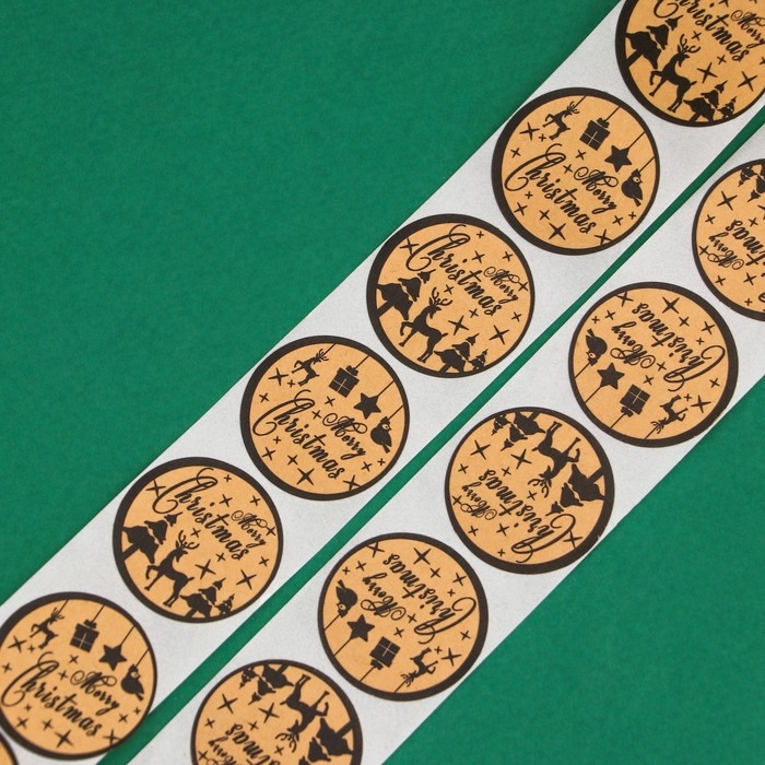Новый год. Наклейки новогодние в рулоне "Merry Christmas", 500 шт, 2,5 х 2,5 см.