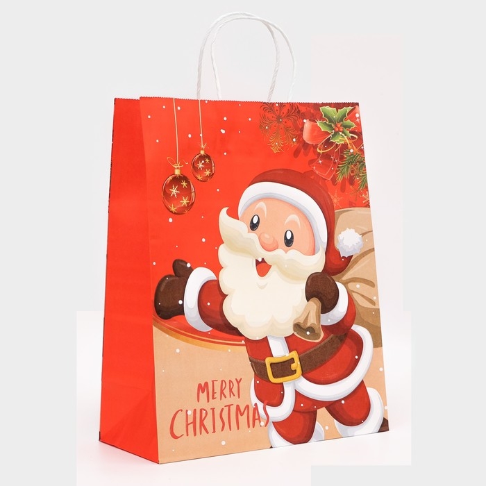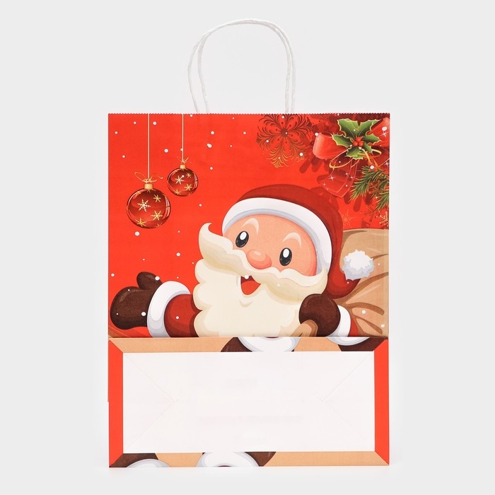 Новый год. Пакет бумажный подарочный новогодний крафт "Дед Мороз", 33 × 26 × 12 см.