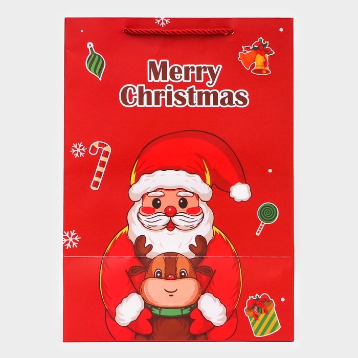 Яркий и красочный дизайн с новогодними мотивами придает пакету праздничный и жизнерадостный вид. Это делает его идеальным выбором для использования в качестве подарочной упаковки на различные зимние праздники, такие как Новый год или Рождество.
