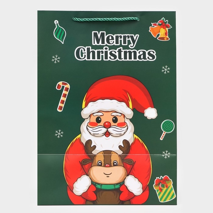 Яркий и красочный дизайн с новогодними мотивами придает пакету праздничный и жизнерадостный вид. Это делает его идеальным выбором для использования в качестве подарочной упаковки на различные зимние праздники, такие как Новый год или Рождество.