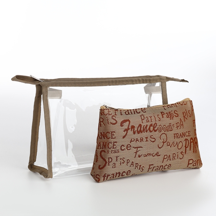 Набор косметичек 2 в 1 на молнии, цвет бежевый