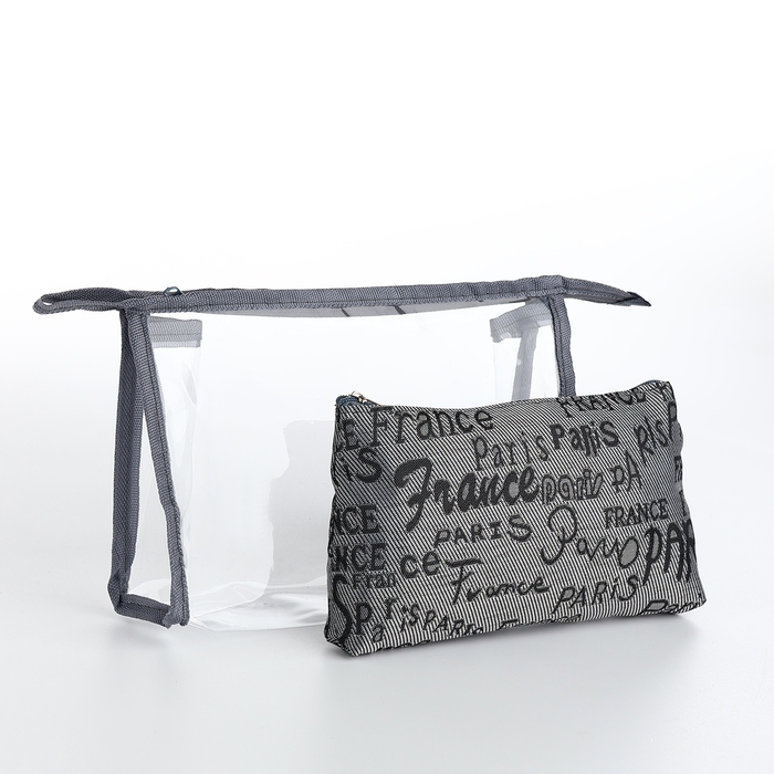 Набор косметичек 2 в 1 на молнии, цвет серый