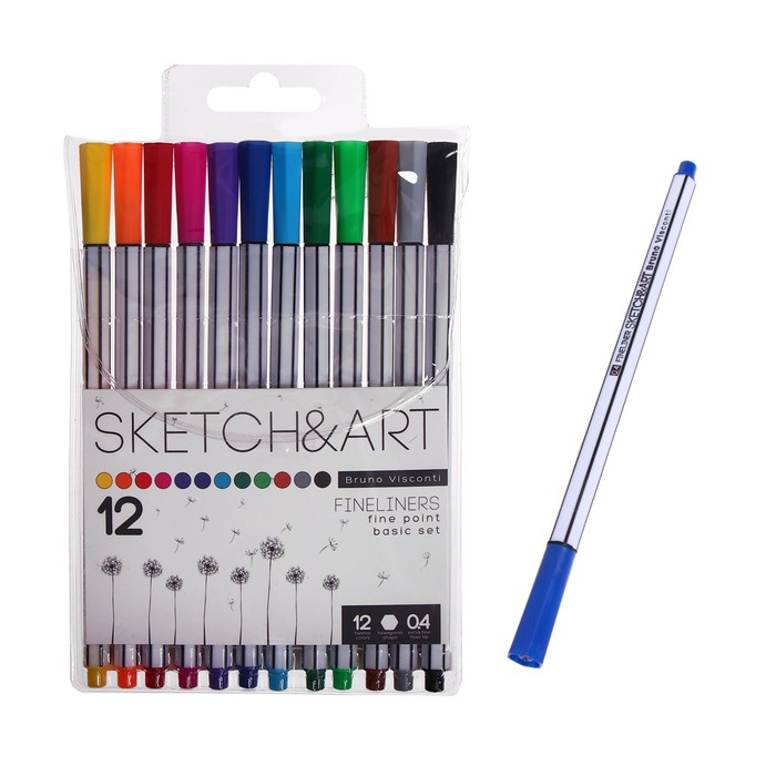 Набор ручек капиллярных 12 цветов Basic, узел 0.4 мм, в ПВХ кармане