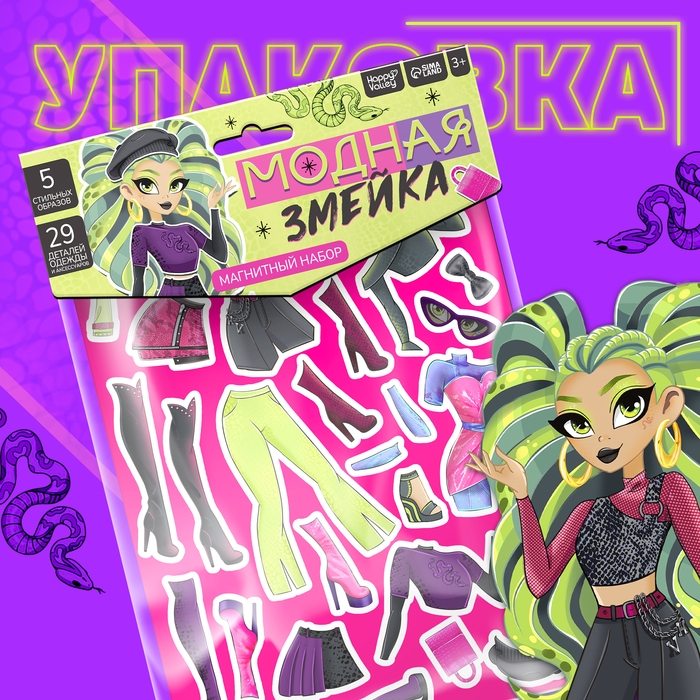 Магнитный набор «Модная змейка», 5 образов, 29 деталей