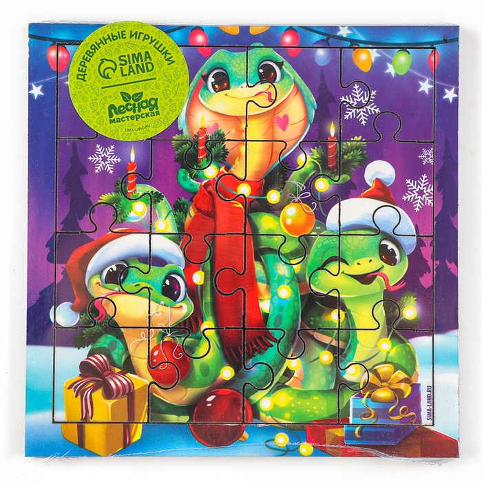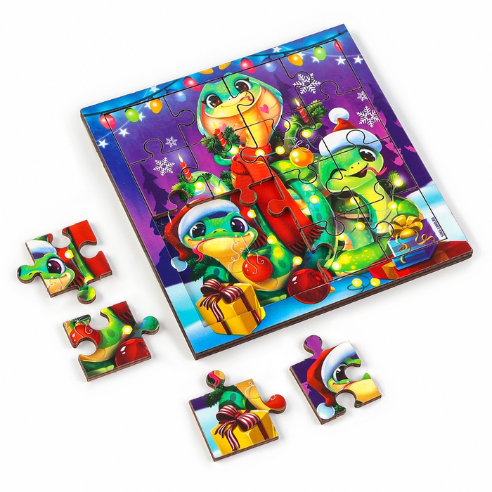 Пазлы для детей деревянные «Новый год! Новогодняя змея», 16 элементов, символ года 2025