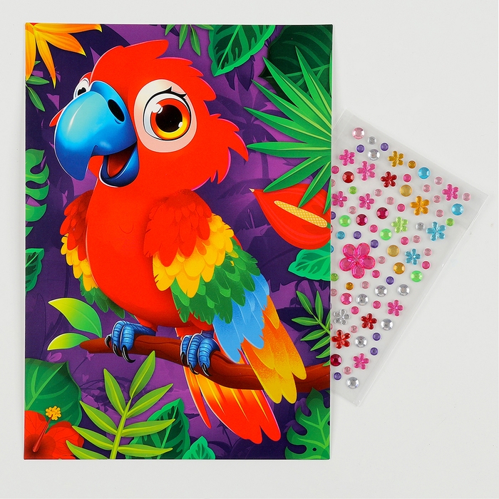 Аппликация стразами для детей «Попугай», набор для творчества, А5