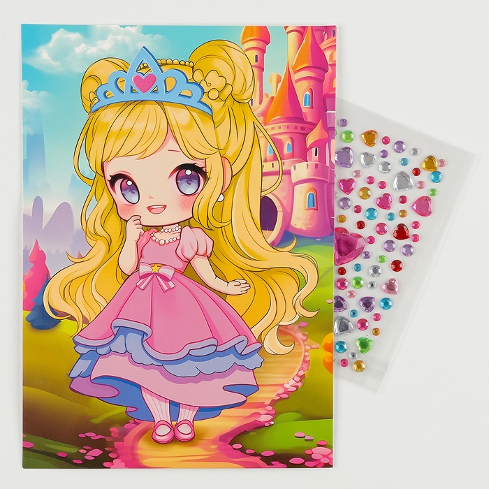Аппликация стразами для детей «Принцесса», набор для творчества, А5