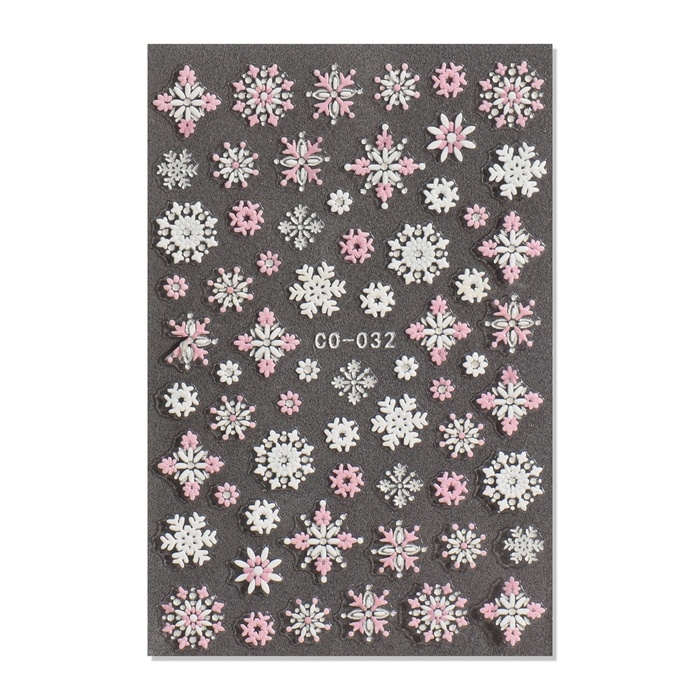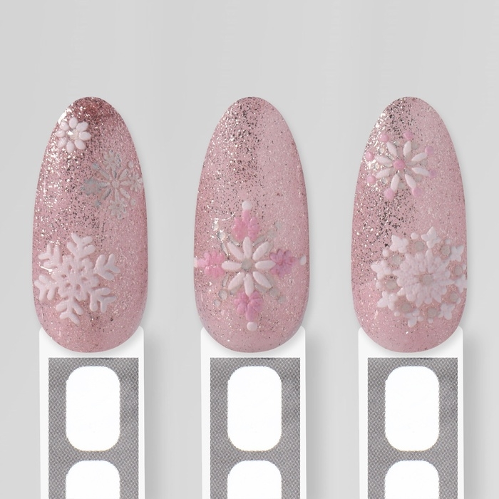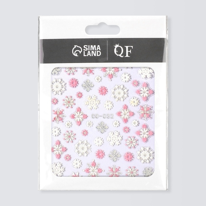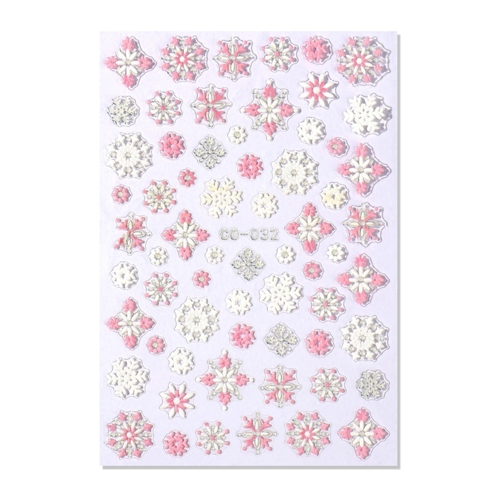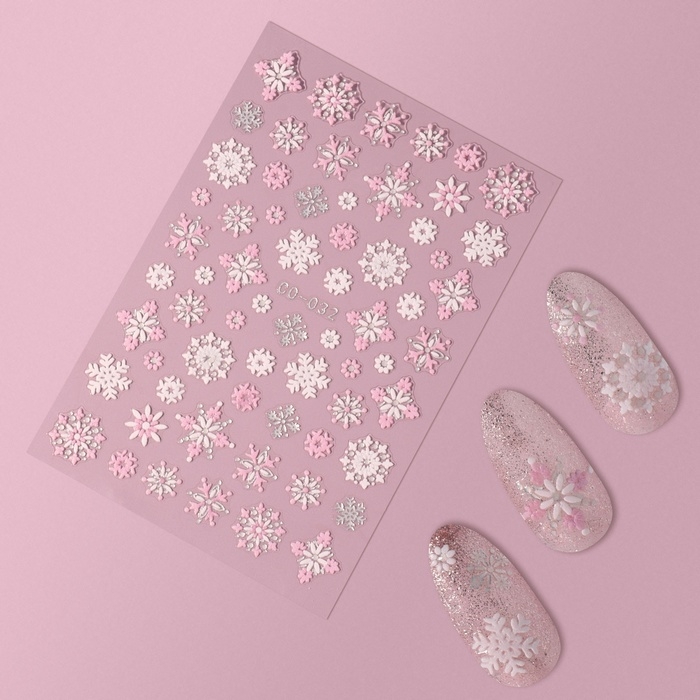 Новый год! Наклейки для ногтей «Снежинки», объемные, цвет белый/розовый
