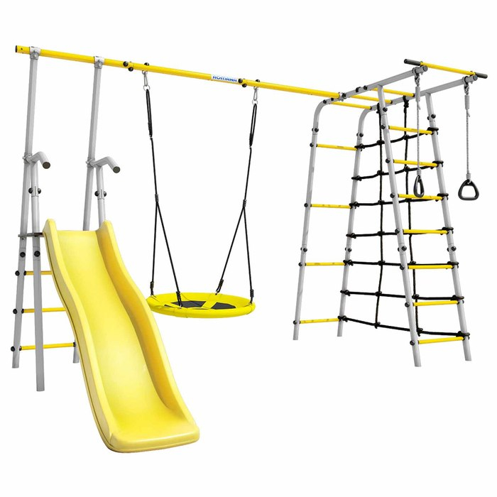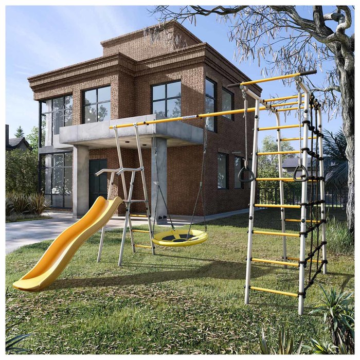 Спортивный комплекс подходит для установки на улице, например, на дачном участке. Разработан специально для детей от 3 лет. С помощью него дети развивают координацию, ловкость и силу, а также могут просто весело проводить время на свежем воздухе.