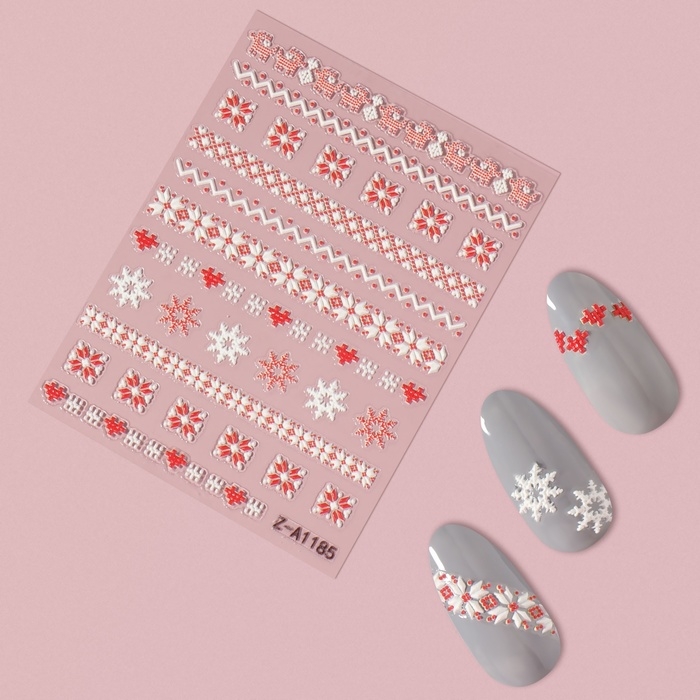 Новый год! Наклейки для ногтей «Зимние узоры», объёмные, цвет красный/белый