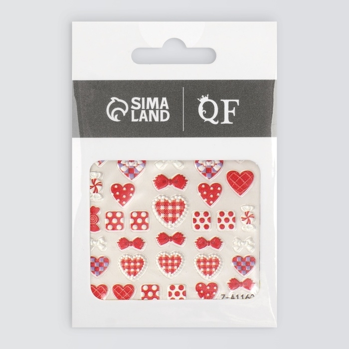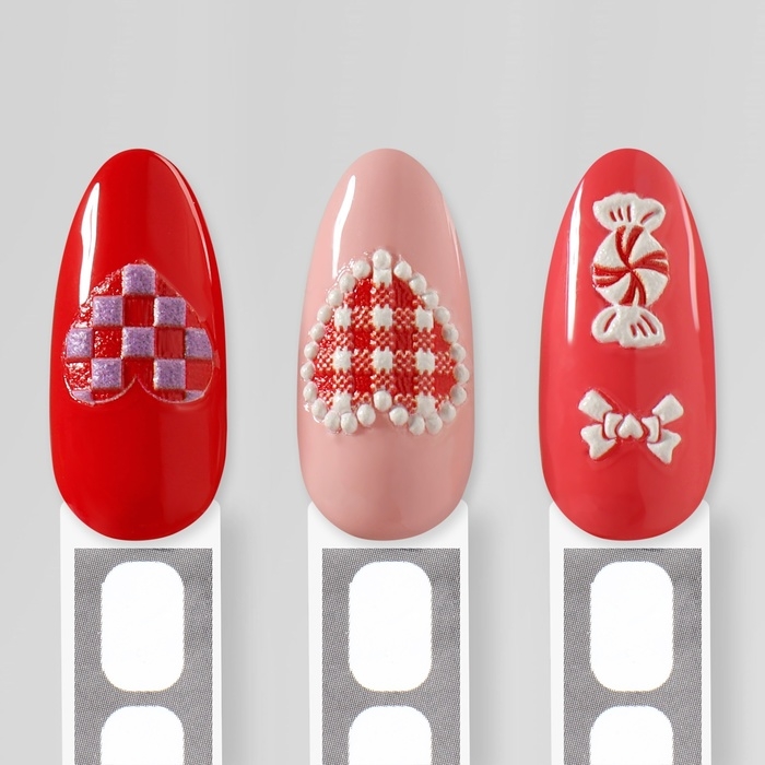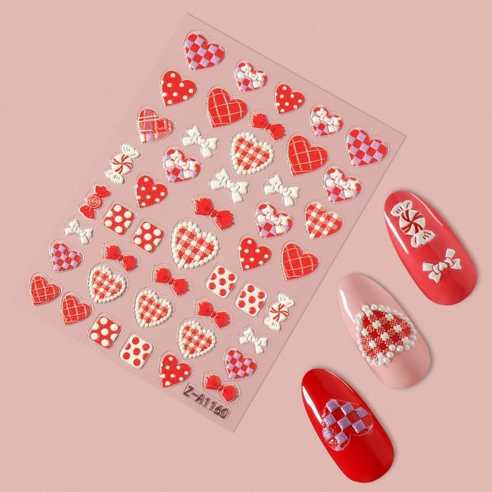 Наклейки для ногтей «Сердца», объемные, матовые, цвет красный/белый/розовый