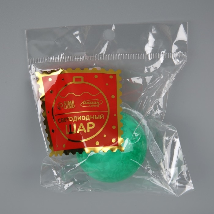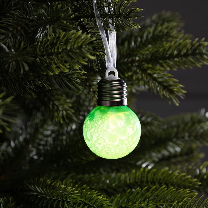 Елочный шар «Зимний узор зеленый» d=5 см, 1 LED, AG13x3 (в комплекте), свечение тёплое белое