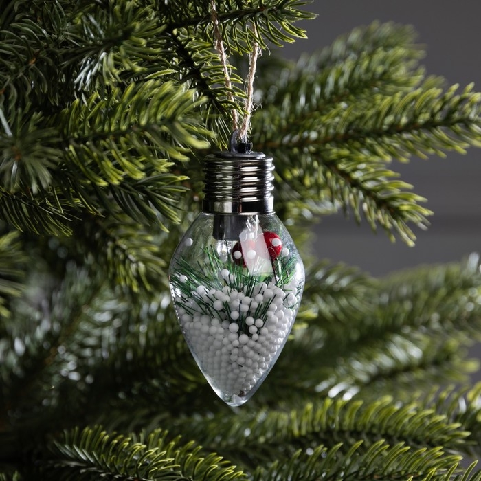 Елочный шар «Снежная хвоя» 9x5.5 cм, 1 LED, LR44x3 (в комплекте), свечение тёлое белое
