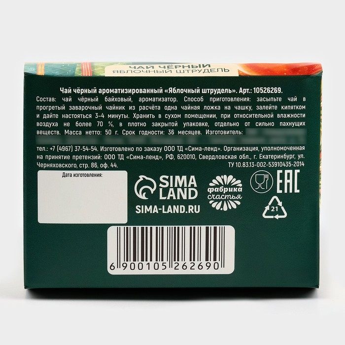 Новый год! Чай подарочный, яблочный штрудель «Тепла и уюта», 50 г.