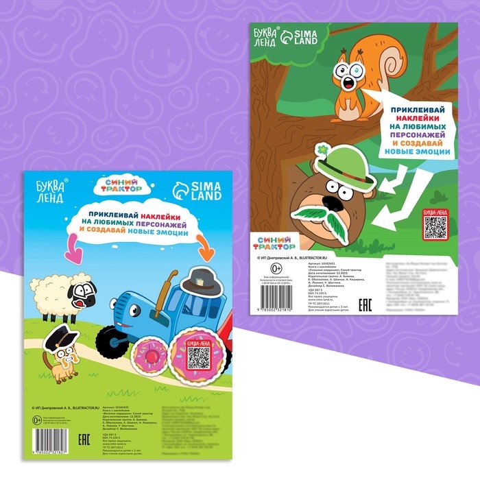 Набок книг с наклейками «Весёлые мордашки», 2 шт., Синий трактор