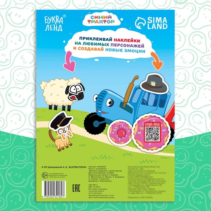 Книга с наклейками «Весёлые мордашки», Синий трактор