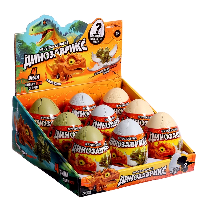 Игрушка-сюрприз в яйце «Динозаврикс», инерционная машинка, открывается от удара, 4 вида, цвет МИКС