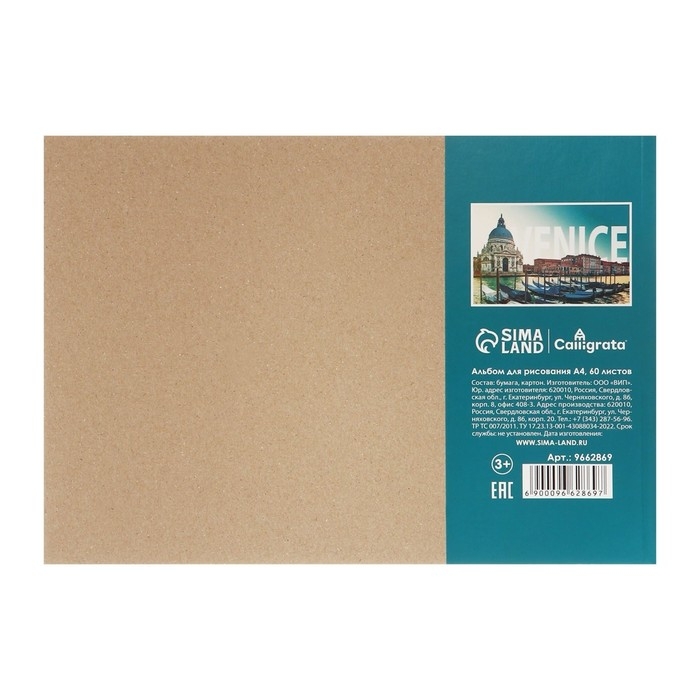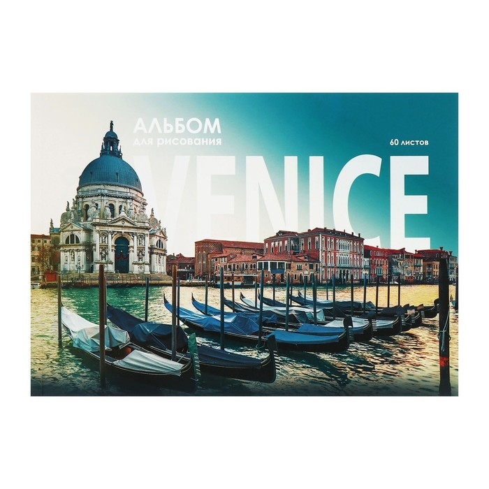 Альбом для рисования А4, 60 листов на склейке "Венеция", обложка мелованный картон, твёрдая подложка, блок офсет 100г/м2