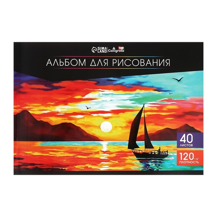 Альбом для рисования А4, 40 листов на склейке Calligrata TOP, обложка мелованный картон, выборочный УФ-лак, блок офсет 120г/м2