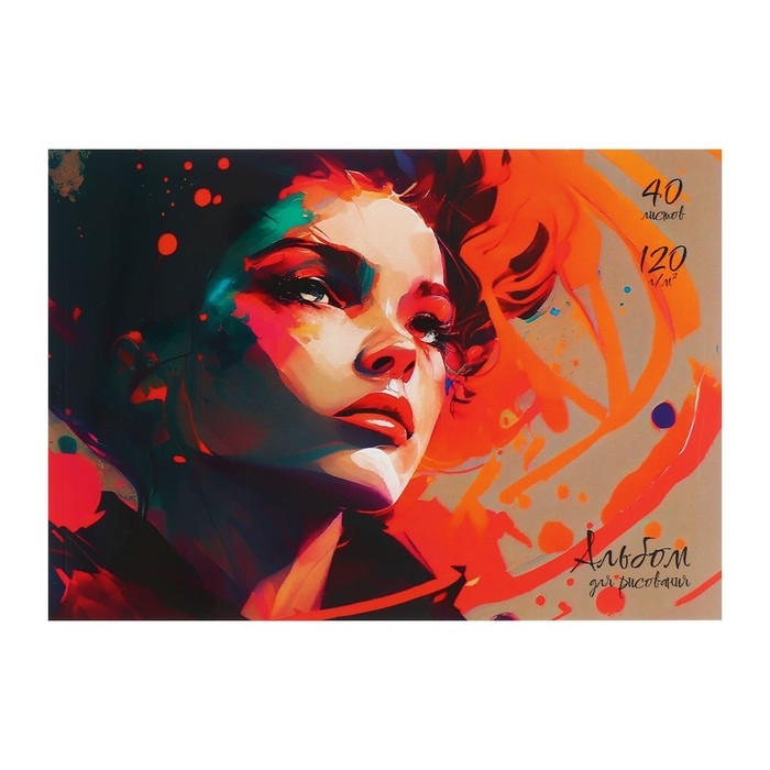 Альбом для рисования А4, 40 листов на склейке "Портрет", обложка мелованный картон, выборочный УФ-лак, блок офсет 120г/м2