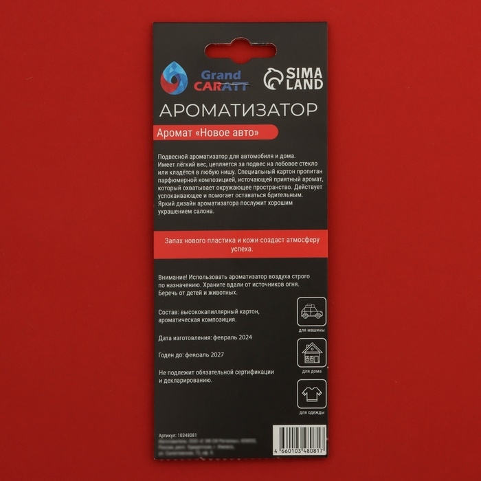 Ароматизатор Grand Caratt обладает уникальной способностью наполнять пространство приятным ароматом, который будет радовать вас на протяжении долгого времени. Благодаря высококачественным ароматизаторам, входящим в состав подвески, вы сможете наслаждаться любимыми ароматами. Подвесной ароматизатор красная звезда легко устанавливается в любом месте автомобиля, будь то зеркало заднего вида, лобовое стекло или вентиляционная решетка. Он не только наполнит ваш автомобиль приятным ароматом, но и станет отличным аксессуаром, подчеркивающим ваш вкус и индивидуальность.