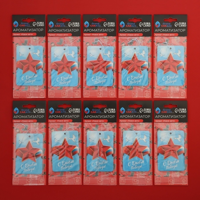 Ароматизатор подвесной Grand Caratt "С днем Победы!", Новое авто, набор 10 шт