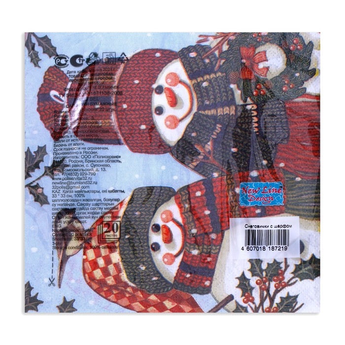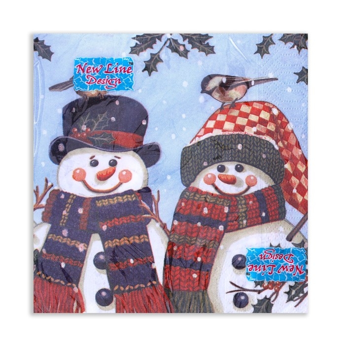 Новогодние салфетки бумажные New Line Design «Снеговички» 3 слоя, 33х33 см, 20 шт