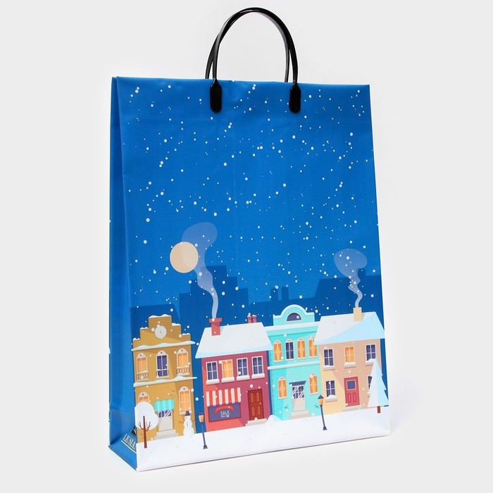 Новый год. Пакет новогодний "Новогодние дома" мягкий пластик 42 х 32 см.