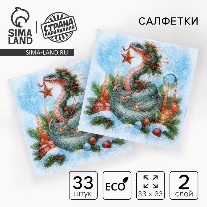 Салфетки новогодние бумажные «С Новым Годом», двухслойные, 33х33 см, 20 шт.