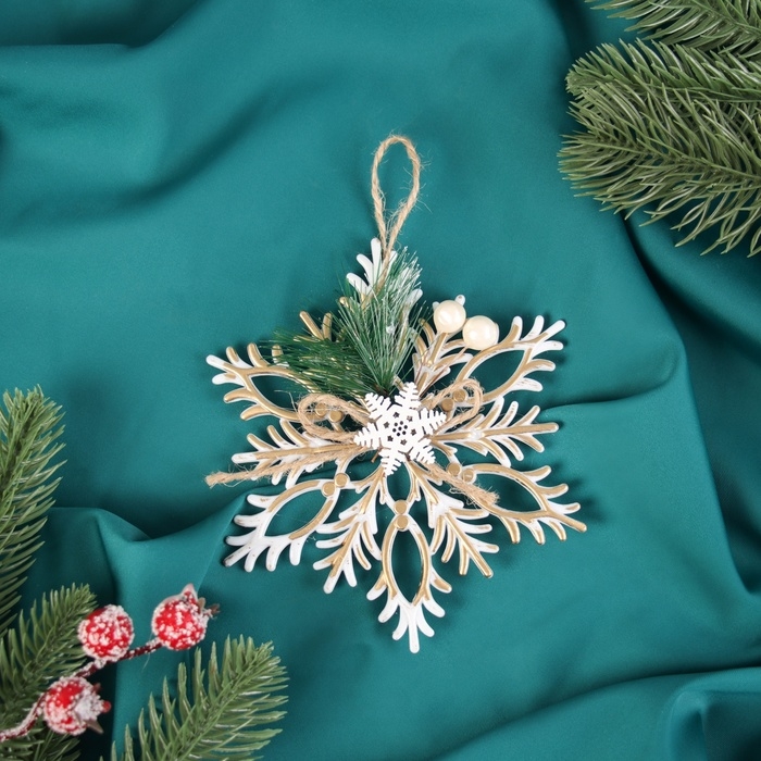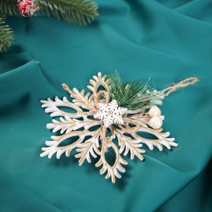 Украшение ёлочное "Снежинка ретро" 12 см, золото с белым
