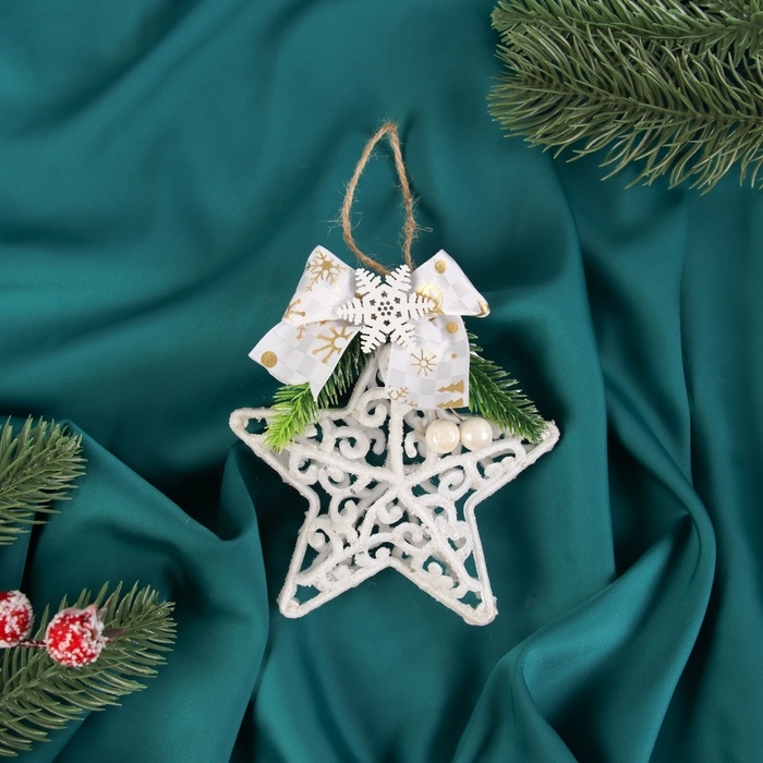 Украшение ёлочное "Звезда блеск жемчужины" 10 см , белый