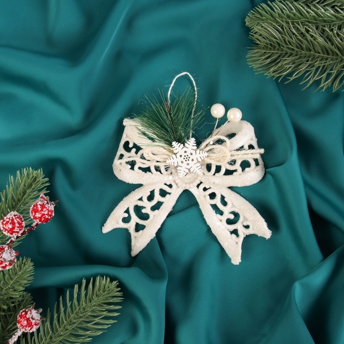 Украшение ёлочное "Бантик блеск жемчужины" 11х10 см, белый