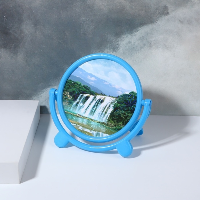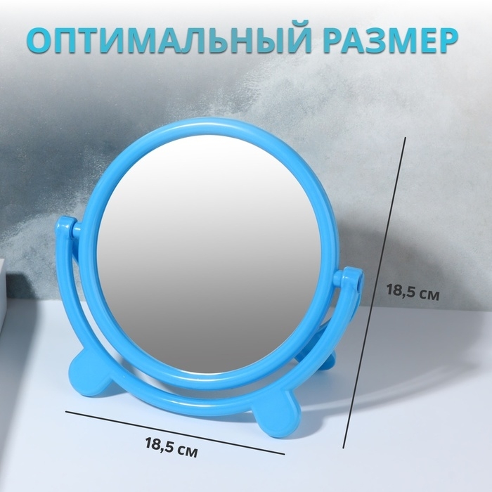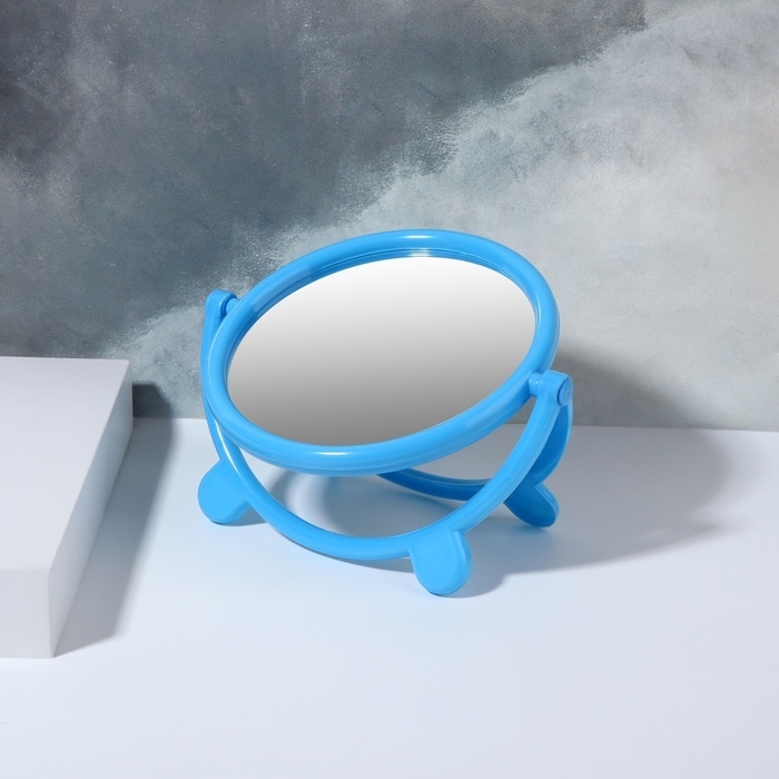 Зеркало настольное «Круг», d зеркальной поверхности 13,5 см, цвет голубой