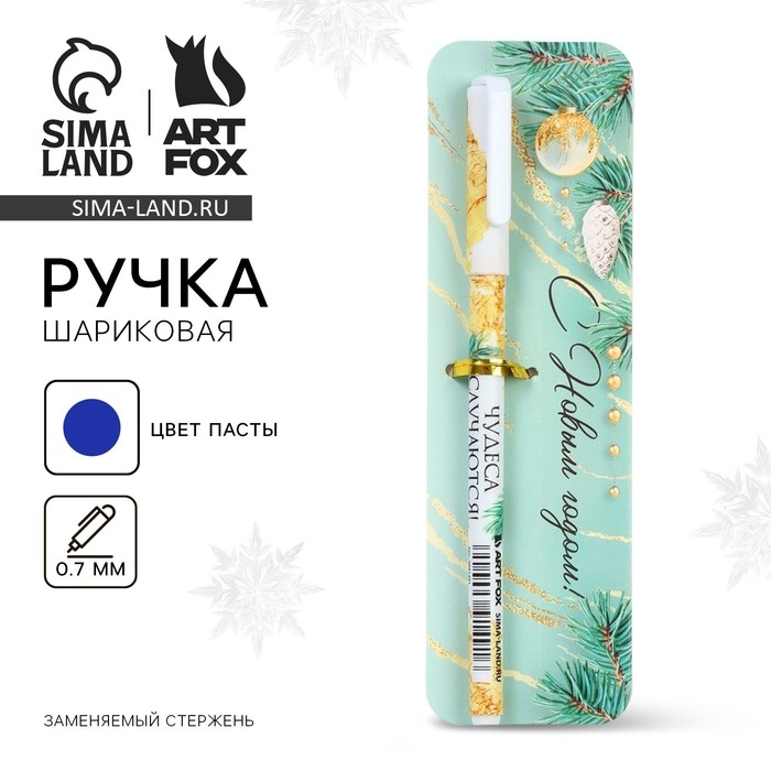 Ручка шариковая с колпачком «Новый год: С Новым годом!», пластик, синяя паста 0.7 мм