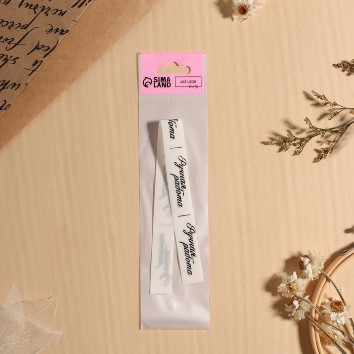 Нашивки на ленте «Ручная работа», 5 × 1,5 см, цвет матовый/чёрный