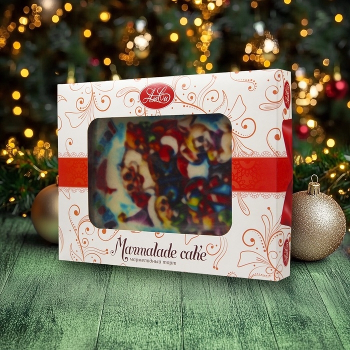 Новогодний мармеладный торт "Новый год" в праздничной упаковке — это великолепное лакомство, которое станет ярким акцентом вашего новогоднего стола. В оформлении торта использованы традиционные новогодние мотивы, а сама упаковка, украшенная снежинками и елочными игрушками, создает атмосферу волшебства и праздника. Каждый кусочек этого торта привнесет в ваше торжество сладкое наслаждение, идеально сочетая в себе аромат и текстуру мармелада, который тает во рту.