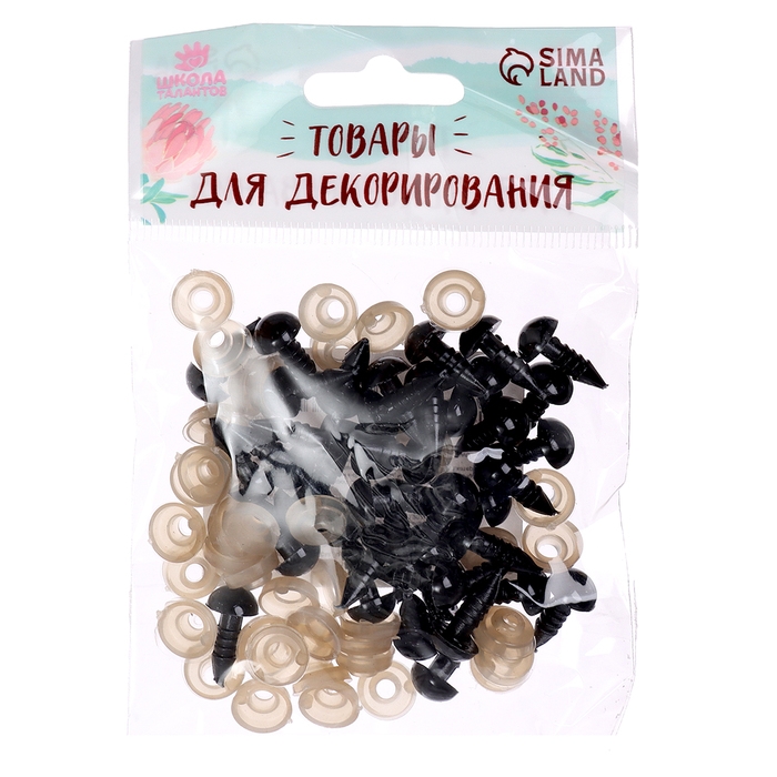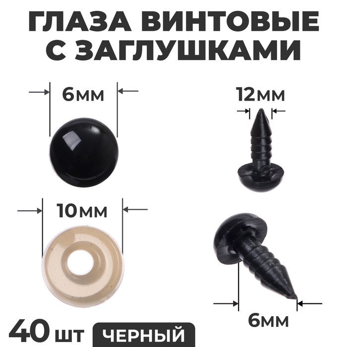 Глаза винтовые с заглушками, набор 40 шт., размер 1 шт. — 0,8 см, цвет чёрный