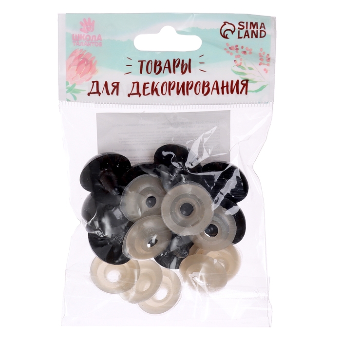 Глаза винтовые с заглушками, набор 10 шт., размер 1 шт. — 2 см, цвет чёрный