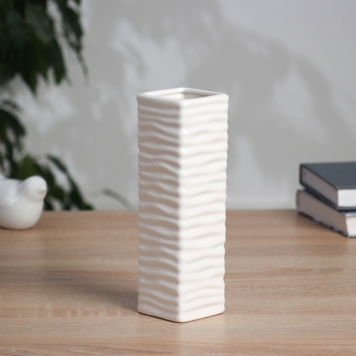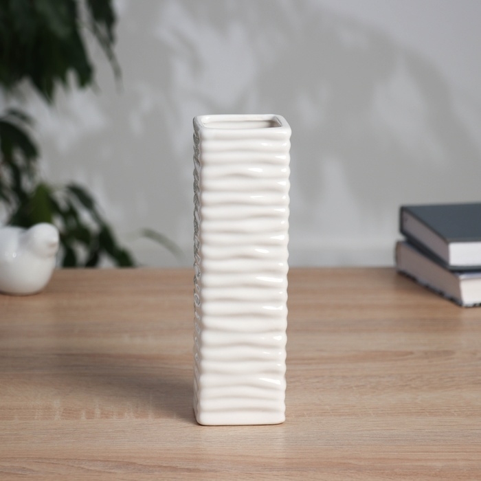 Ваза керамика настольная "Тьяго" волны, 18х5,5 см, белый