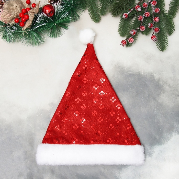 Колпак новогодний "Капли орнамент" 30х34 см, красный