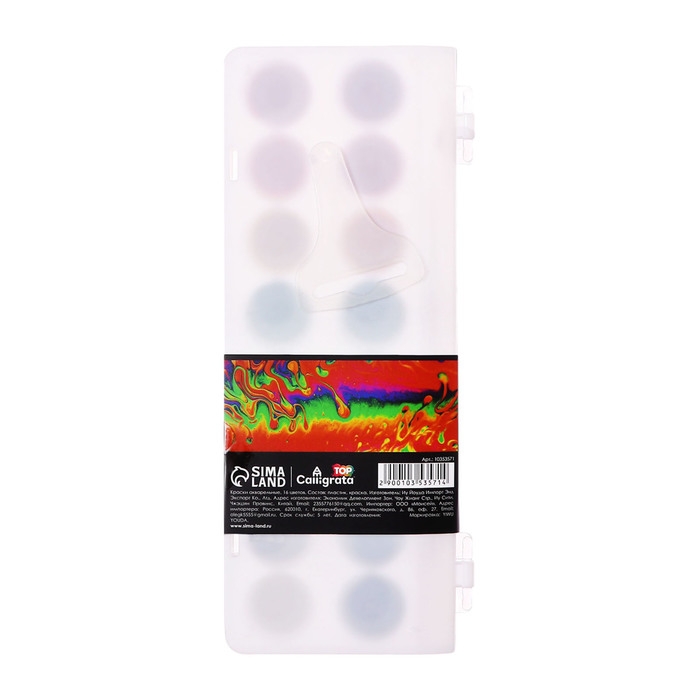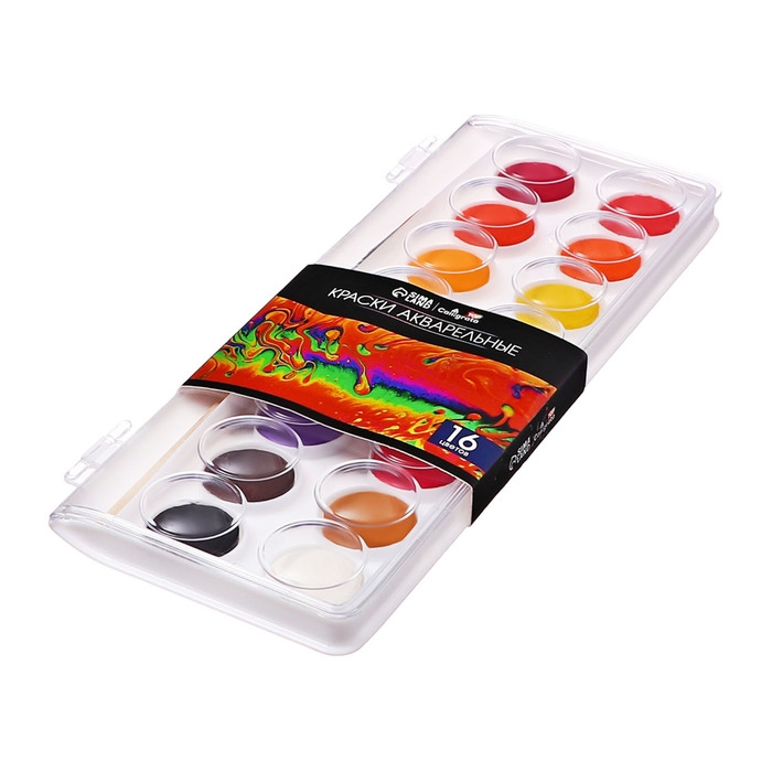 Акварель Calligrata, 16 цветов, разработана с учетом рекомендаций педагогов. Идеально подходит для занятий рисованием в детском саду, школе и дома. Яркие, чистые цвета развивают фантазию и интерес к творчеству. Акварель легко смывается с рук, отлично смешиваются между собой и позволяют создать множество оттенков, обеспечивают однородное окрашивание. Краски быстро высыхают и не портятся со временем. Безопасны для детей, нетоксичны. Выпускаются в пластиковом пенале с отделением для кисточки. Упаковка обладает компактными размерами и легким весом. диаметр кювета 23 мм.