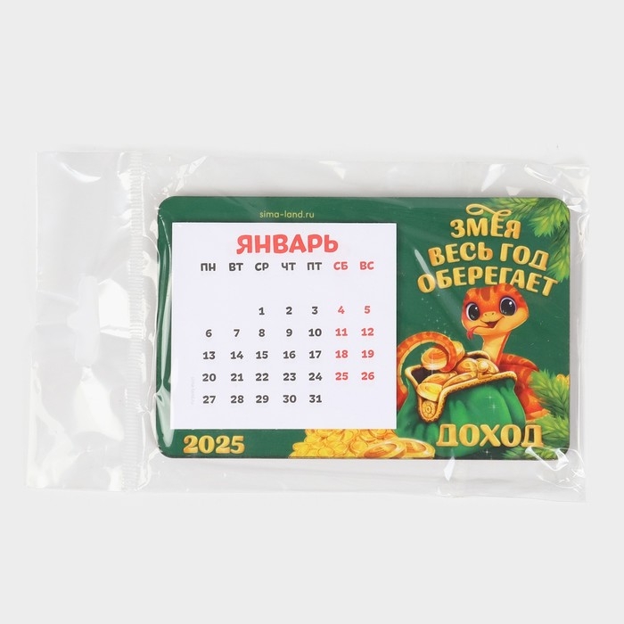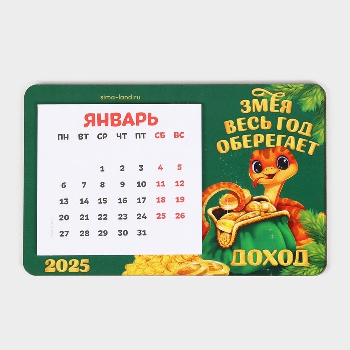 Магнит новогодний дерево с календарем «Новый год: Змея оберегает», 7 х 11 см
