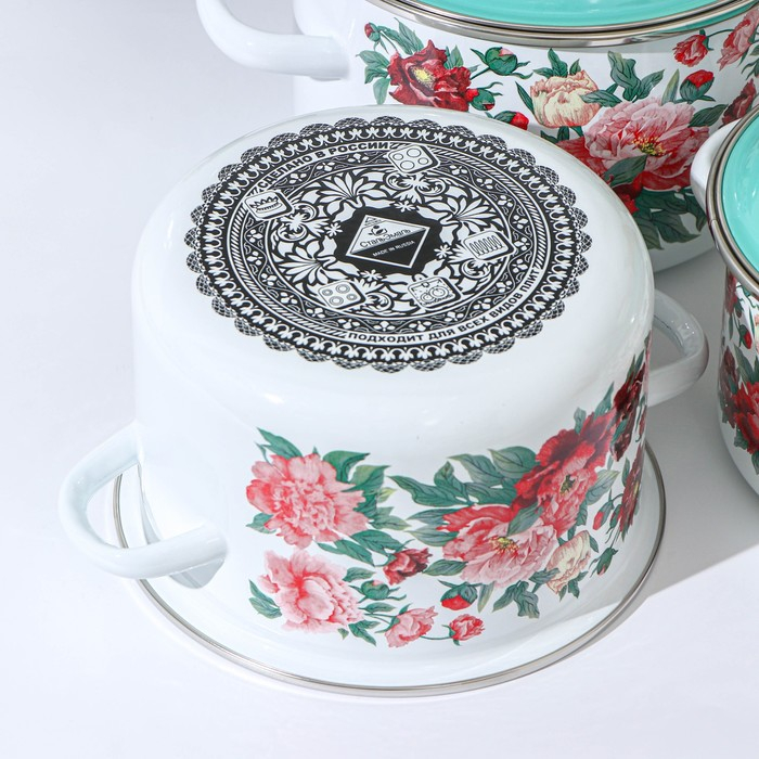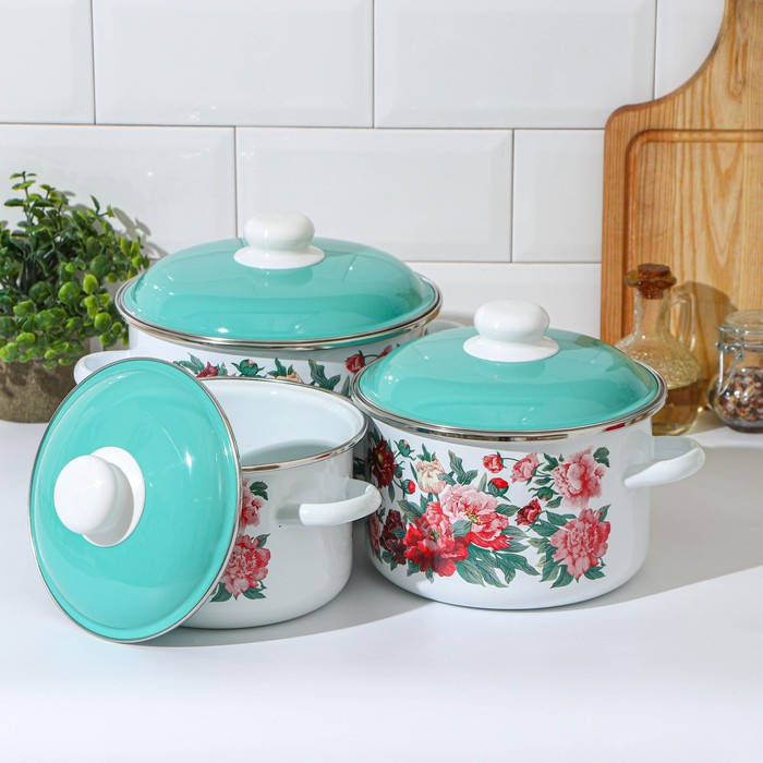 Набор эмалированных кастрюль «Китайская роза», 3 предмета: 1,5 л, 2 л, 3 л, индукция