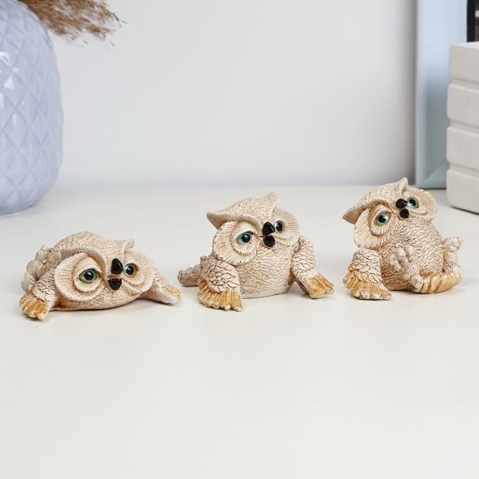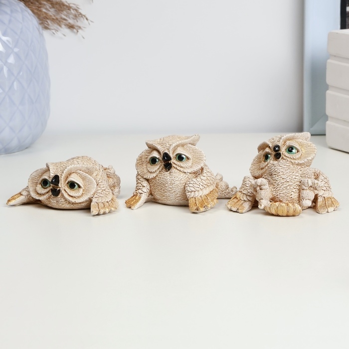 Набор фигур "Три совы" бежевые, 5см