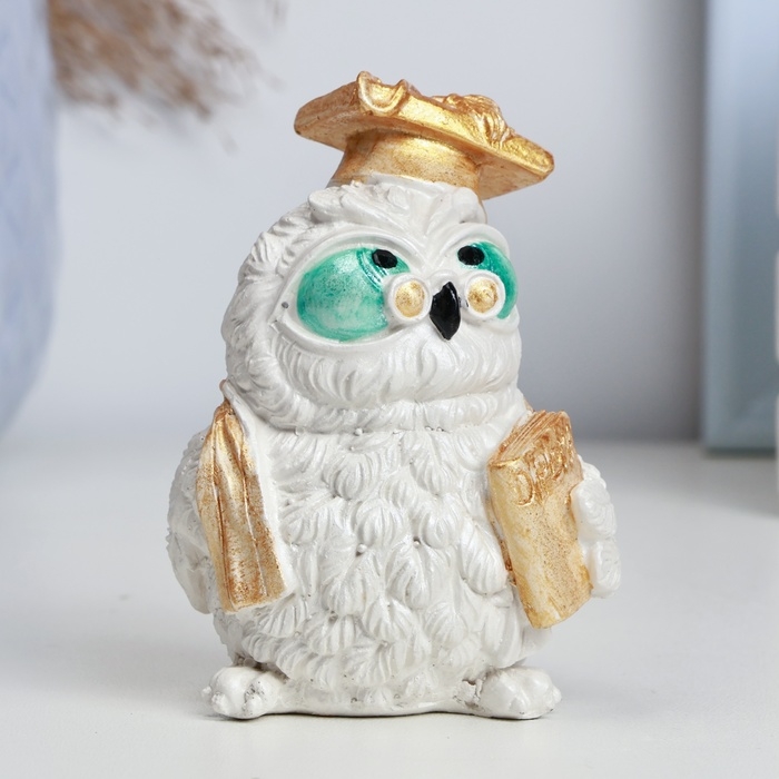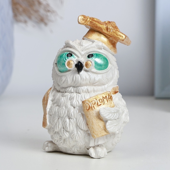 Фигура "Сова с дипломом" перламутр, 8,5х5см