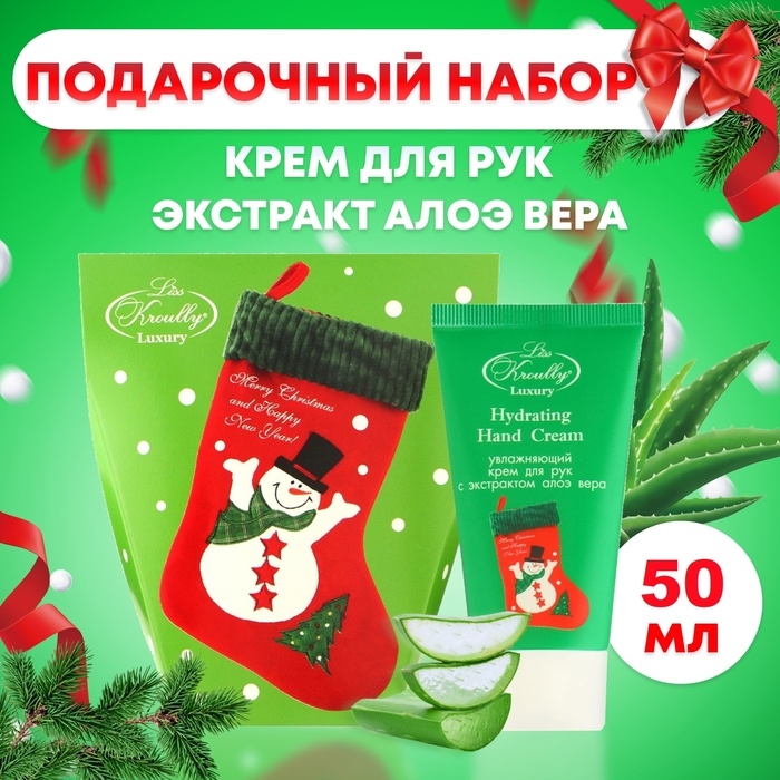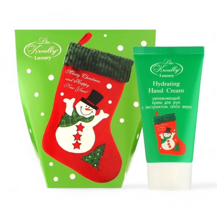 Новый год. Подарочный набор косметики Liss Kroully: крем для рук "Новогодний носок", увлажняющий с экстрактом алоэ вера, 50 мл